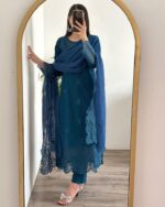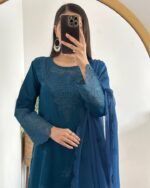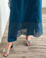 Elevate your wardrobe with the timeless elegance of our Lala-e-Sahar 3-piece suit. Crafted for the modern woman, this ensemble combines sophistication and comfort, making it a perfect choice for formal occasions or festive gatherings. The deep teal color exudes grace, while the intricate detailing adds a touch of luxury to your look.