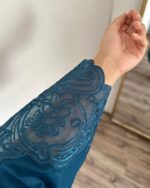 • Style: Long-sleeved shirt with a round neckline and floral lace accents for a modern yet traditional look.
