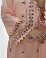 - Kameez: Cotton Embroidered, Features intricate embroidery with floral and geometric motifs, accentuated with lace detailing on the sleeves and borders. The delicate threadwork adds a luxurious touch.
